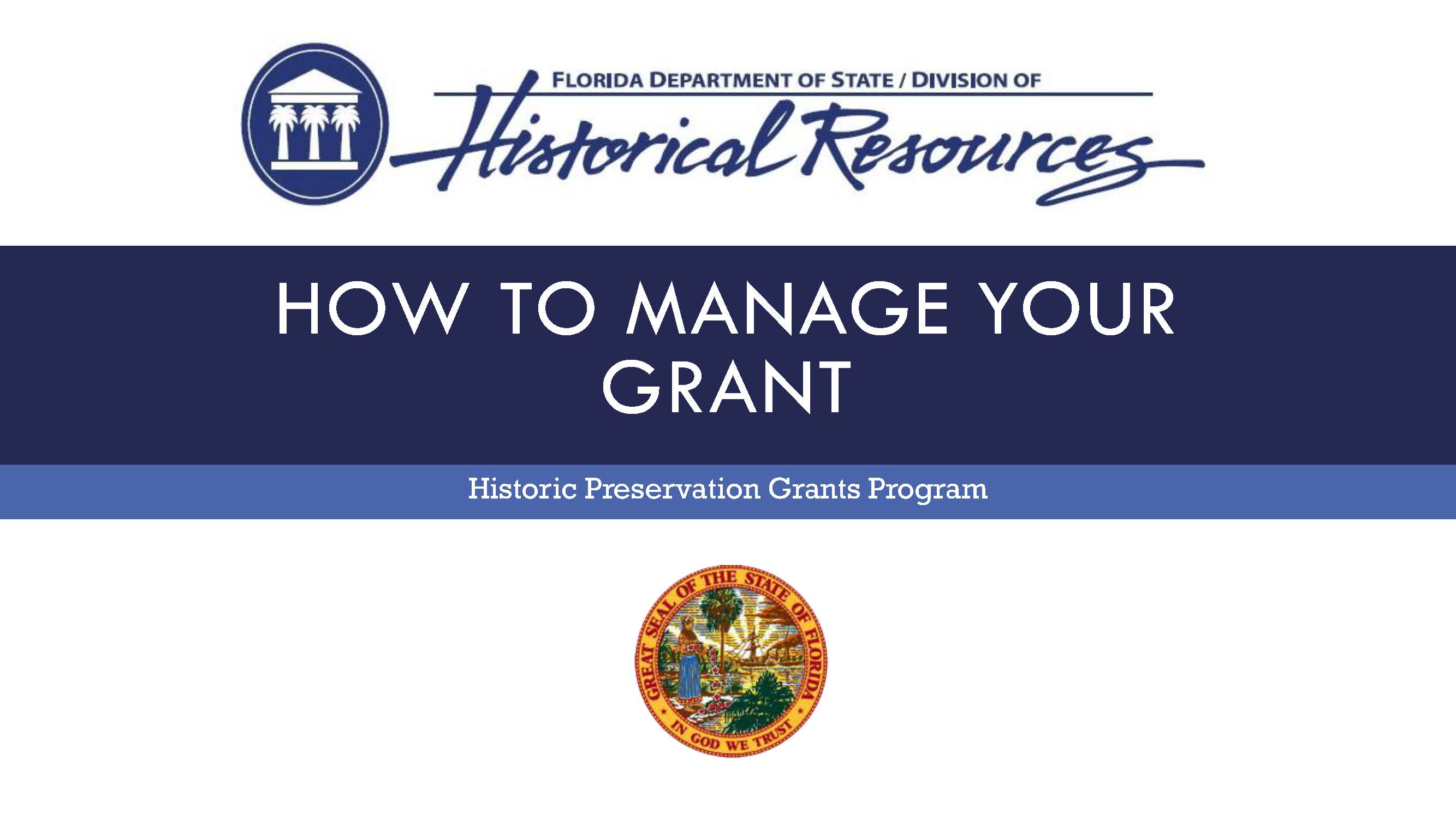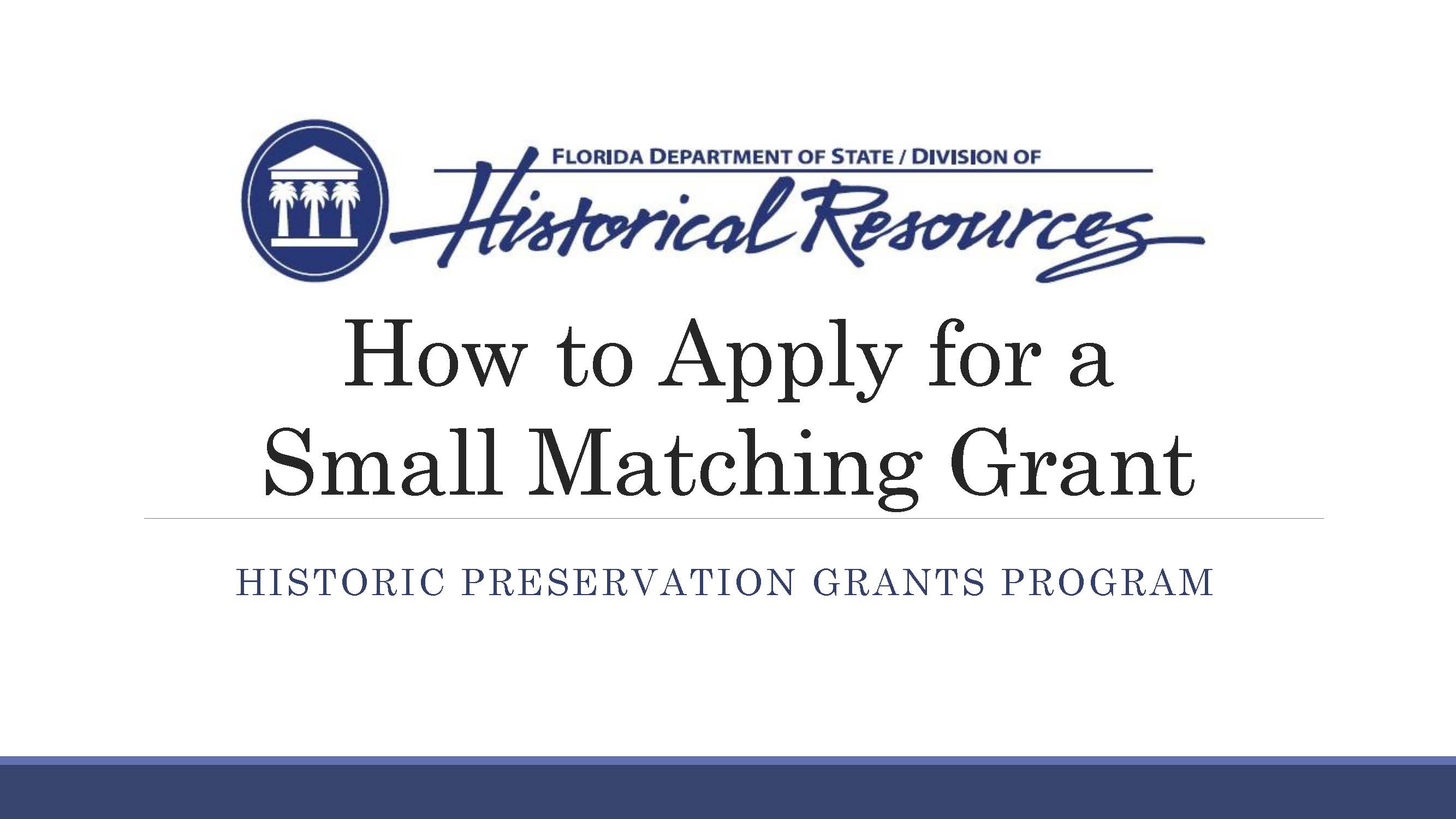 When applying for a grant from the Division of Historical Resources the following information should prove useful.